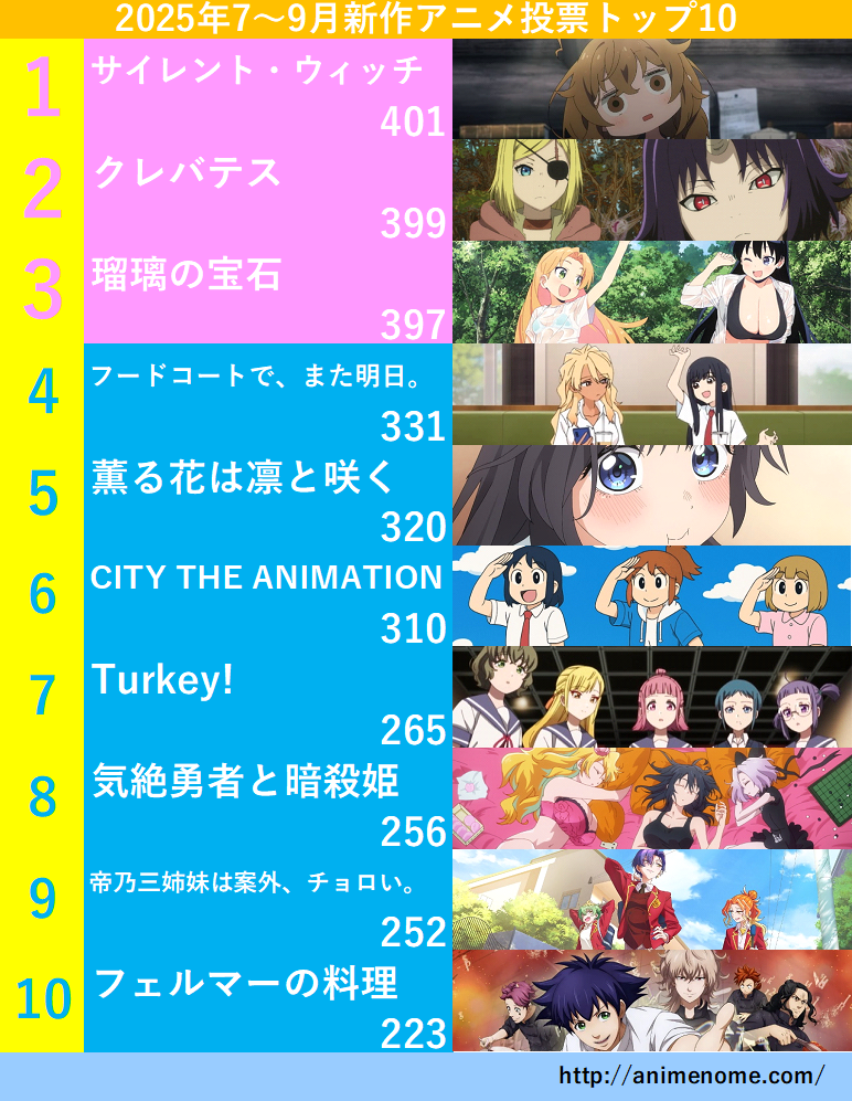 | 2025年7月~9月新作アニメ投票結果 | ||